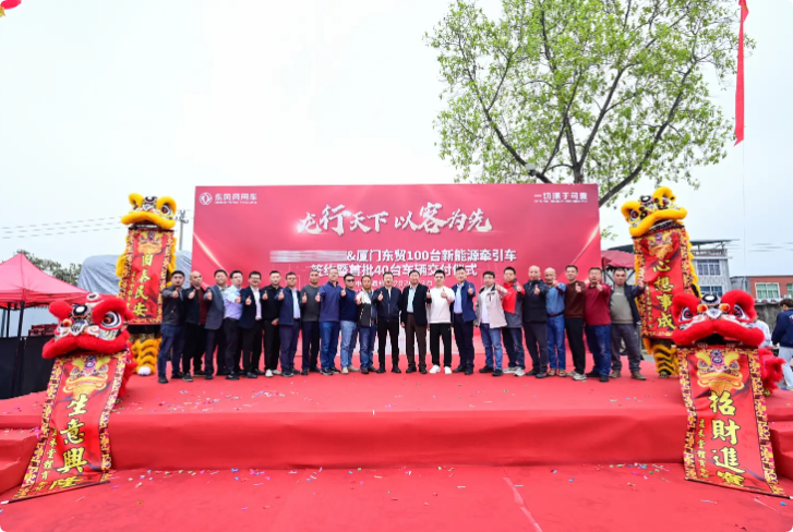 春风涌动启新程,绿动物流向未来。3月28日,东风商用车有限公司与FJHB在福建漳州隆重举行100台新能源牵引车签约暨首批40台车辆交付仪式。FJHB公司领导层与东风商用车有限公司行业客户开发部部长薛林艺、东风汽车贸易有限公司党委书记曹志、东风汽车贸易有限公司总经理助理张专荣、行业客户开发部首席客户经理伍明、福建商代处负责人张保军等领导见证。此次合作标志着东风商用车在细分场景的新能源商品布局再添重要成果,为区域物流绿色转型注入强劲动力。